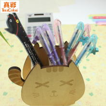 日韩文具可爱创意笔筒木质卡通萌萌哒招财猫笔桶中性铅笔收纳桶