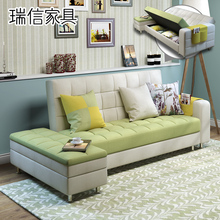 瑞信小户型多功能客厅双人沙发PU皮布艺储物可折叠沙发床两用2170