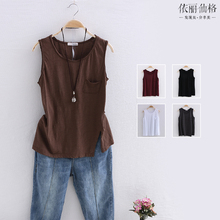 韩版春夏装V领纯色棉麻无袖背心马甲 修身显瘦亚麻上衣坎肩外套女