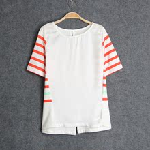 B53女装t恤白菜价棉布拼接短袖条纹衫