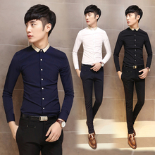 新款男士长袖衬衫韩版修身青年白衬衣商务休闲纯色寸衫春季男装潮