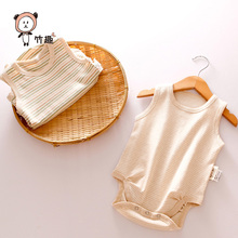竹趣 宝宝包屁衣无袖背心哈衣 纯棉婴儿短袖爬服 新生儿用品