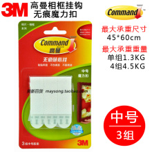 特价 3M高曼无痕相框魔力扣(中号)免钉相框挂钩 油画 照片墙