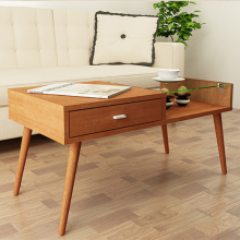 北欧原木色家具长茶几 现代简约创意茶几咖啡桌 日式风格双层茶几