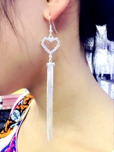 新款时尚水晶流苏韩国女款水滴长款爱心耳环耳钉耳坠耳扣饰品批发