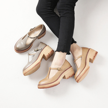 春季英伦风小皮鞋女厚底防水台玛丽珍女鞋浅口百搭中跟粗跟女单鞋