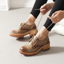 学院风系带小皮鞋粗跟单鞋女英伦风女鞋圆头厚底防水台复古高跟鞋