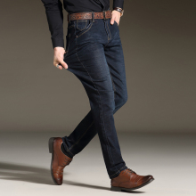弹力加绒加厚牛仔裤男秋冬季修身直筒商务休闲男士大码加绒加厚棉
