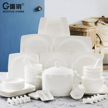 西式纯白家用56头骨瓷餐具套装欧式碗盘陶瓷创意简约方形碗碟套装