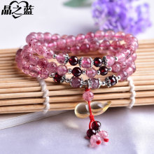 晶之蓝天然水晶体草莓晶多圈手链 粉晶黄水晶葫芦多层手串