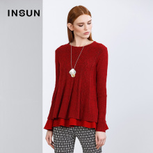 INSUN/恩裳真两件套梯形式灵动垂感百搭驼羊毛毛织衫94606120配