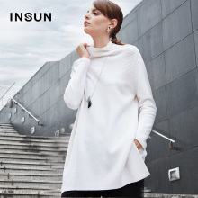 INSUN恩裳100%纯羊毛时尚侧开叉设计高领套头毛针织衫女96206135
