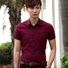2017夏季新款男士纯色短袖衬衫青年休闲免烫半袖衬衣薄款修身寸衫