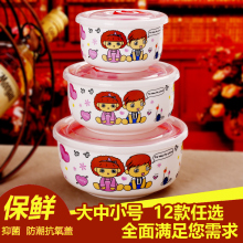 瓷美柯陶瓷饭盒保鲜盒套装密封带盖三件套微波炉便当盒保鲜泡面碗