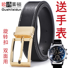 欧诗莱顿男士双面真皮合金旋转针扣皮带 商务休闲牛皮裤带韩版