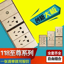 118型开关插座面板组合二位二三插六孔多功能十孔墙壁电源香槟金