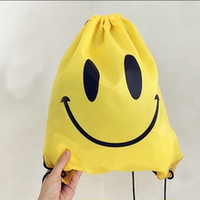 支持国货!原宿风黄色笑脸沙滩包抽绳双肩背包smile运动防水包