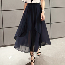 2017春夏新款雪纺半身裙女不规则中长裙飘逸大摆裙子高腰显瘦中裙