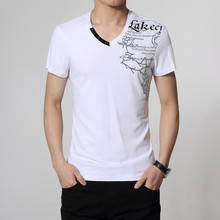歌岛夏季男士v领短袖t恤韩版纯棉半袖男装青少年印花体恤有加大码