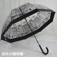 英伦风建筑物透明伞拱形自动伞创意女生雨伞长柄伞可爱公主伞