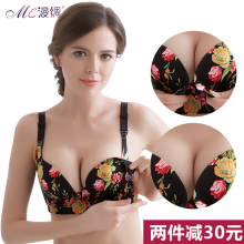 漫绸一片式哺乳文胸前开扣聚拢防下垂孕妇内衣无钢圈无痕喂奶胸罩