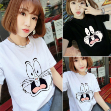 T恤女夏新款宽松百搭印花惊恐兔体恤衫韩国学生bf休闲简约上衣潮
