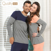 浅休2014秋新款 撞色拼接时尚情侣睡衣家居服套装 长袖长裤睡衣