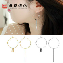 S925纯银夸张大圆圈流苏直条不对称耳环耳钉宋慧乔同款韩国耳饰