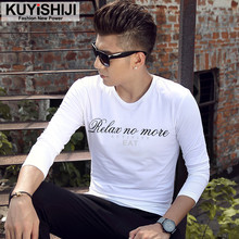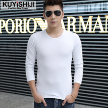 秋季新款男士长袖t恤男装纯白棉圆领修身纯色打底衫大码上衣服潮