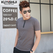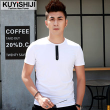 2016款男士短袖t恤圆领纯白色体恤修身拉链打底半袖夏季男装衣服