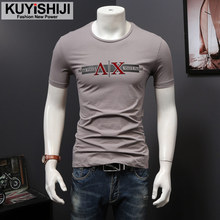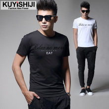夏季社会小伙短袖男t恤修身圆领字母印花青年白色体恤潮流打底衫