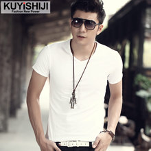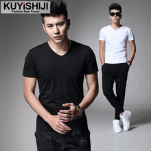 夏季新款男士短袖t恤V领修身韩版潮衣服打底衫纯白色半袖紧身男装