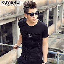 2017夏季新品男士字母印花 欧美风衣服修身圆领短袖半袖衣服t恤潮