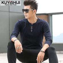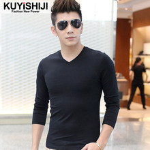 酷依世纪 秋装纯色男士长袖t恤男装韩版修身T恤男款V领时尚打底衫