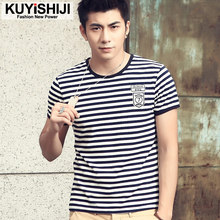 夏季圆领条纹男短袖t恤打底衫韩版修身大码半袖黑白条潮流上衣服