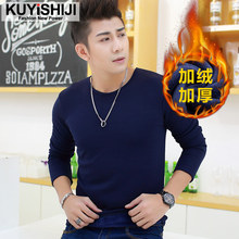 2016冬季新款男士修身上衣加绒加厚长袖t恤圆领纯色打底衫秋衣潮