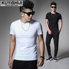 男士t恤 短袖纯白色圆领修身打底衫男装衣服紧身半截袖体t恤潮牌