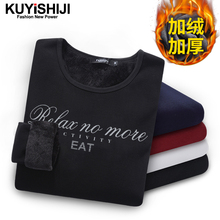加绒加厚男士长袖t恤圆领时尚印花修身青年打底衫体恤保暖上衣潮