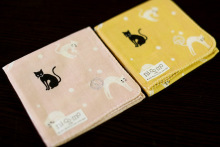 2件包邮!日本制 山本仁女士手帕 手绢 纯棉棉纱柔软 黑白猫咪