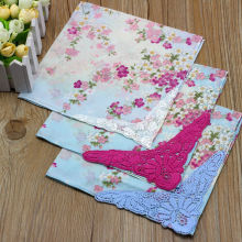 女人纯棉手帕 小清新 和风浪漫樱花 女士方巾 高档蕾丝花边手绢
