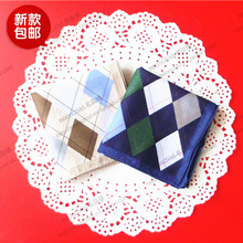 包邮出口日本欧美时尚风格菱形格优雅男士60支全棉大手帕手绢蓝色