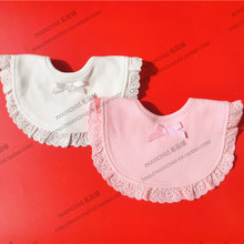 新款出口韩国原单粉白色全棉女宝公主围嘴蕾丝花边围兜全棉口水巾
