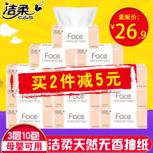 洁柔抽纸家用餐巾面巾卫生纸Face纸巾批发无香整箱家庭装层抽10包