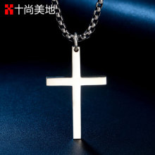 十尚美地不退色简约钛钢十字架项链男士女长款刻字首饰品情侣吊坠