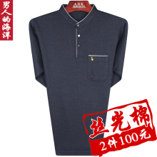 包邮2017中老年长袖男T恤立领男装老年男士t恤长袖老年加大码T恤