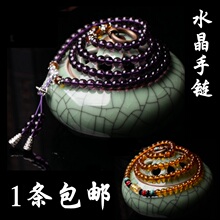 包邮 108颗紫水晶佛珠手链佛珠黑曜石多圈转运念珠天然黄水晶项链