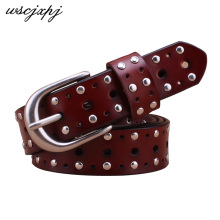 女士铆钉牛皮腰带女韩版时尚装饰牛仔裤皮带女款真皮镂空百搭裤带