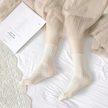 春夏镂空蕾丝堆堆袜日系甜美薄款中筒袜透气清新网袜纯色亲子袜女