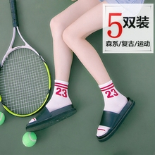 秋季礼盒5双装女士袜子棉袜两条杠袜子女运动短袜中筒棒球袜