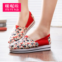 咪呢咔2017春季韩版懒人鞋松糕跟帆布鞋女透气老北京低帮平底单鞋